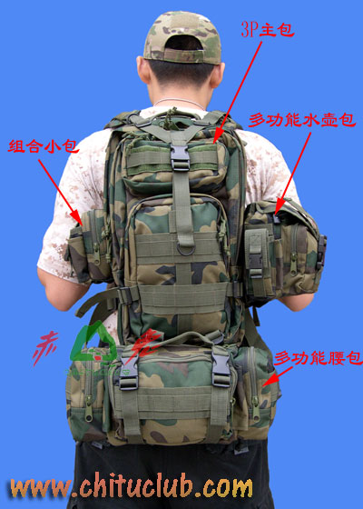 共四件:组合小包、多功能水壶包、多功能腰包、3P主包。