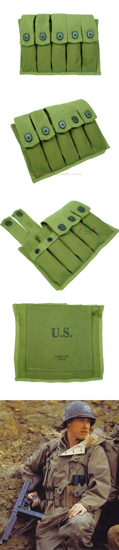 外贸品,纯棉质地此款专为M1A1汤姆逊冲锋枪所配备的五联装20发弹夹包,是二战美军士兵标准装备之一。