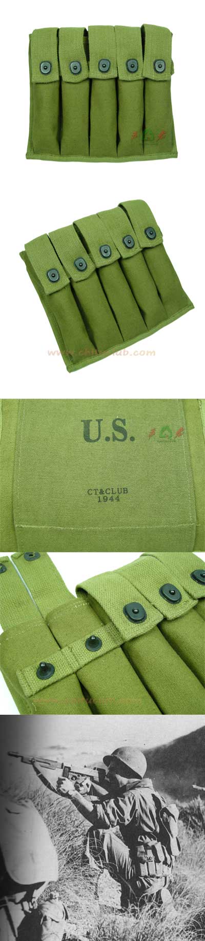 外贸品,纯棉质地此款专为M1A1汤姆逊冲锋枪所配备的五联装30发弹夹包,是二战美军士兵标准装备之一。