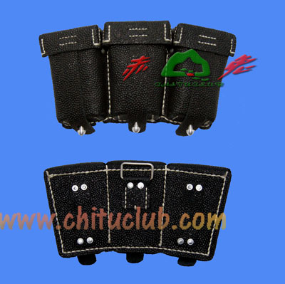 外贸出口品纯牛皮制,德军98K步枪专用弹夹包,需配合德军Y型背带与腰带组合使用。