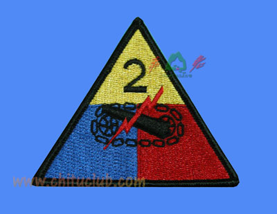 台湾产刺绣臂章 美国陆军第二装甲师,昵称“Hell on Wheels(车轮上的地狱)”,作为一个重要的角色在二战期间参加了北非和西西里的战斗,以及解放法国、比利时和荷兰,同时进入德国作战。冷战期间,该师大部分作战单位驻扎在德克萨斯州的胡德堡基地,有一个旅留在了联邦德国。在参加过1991年的沙漠风暴行动后,该师于1992年被解散。 第二装甲于1940年7月15日在美国佐治亚州贝宁堡建立。首任指挥官是斯科特少将,乔治巴顿上校负责训练。同年11月,斯科特少将被晋升为第一装甲集团军指挥官,巴顿擢升为准将担任该师指挥官。 第二装甲属于重装甲师,下设两个装甲团,共有四个重型坦克营和两个轻型坦克营。