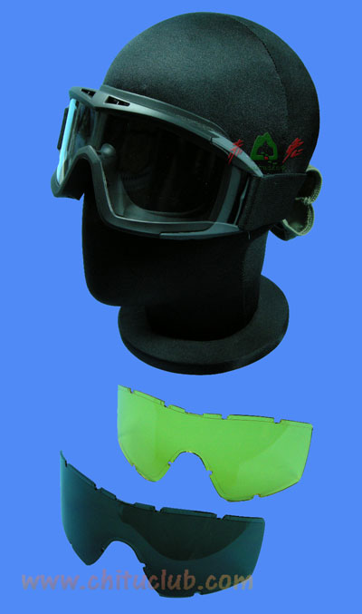 新型战术风镜附带黄色及深色替换镜片(共三色镜片)