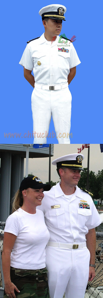 美军军版原品半袖白礼服套装,包括帽子、肩章、金属章、勋略、腰带。(裤子全新号码齐全)上衣M号