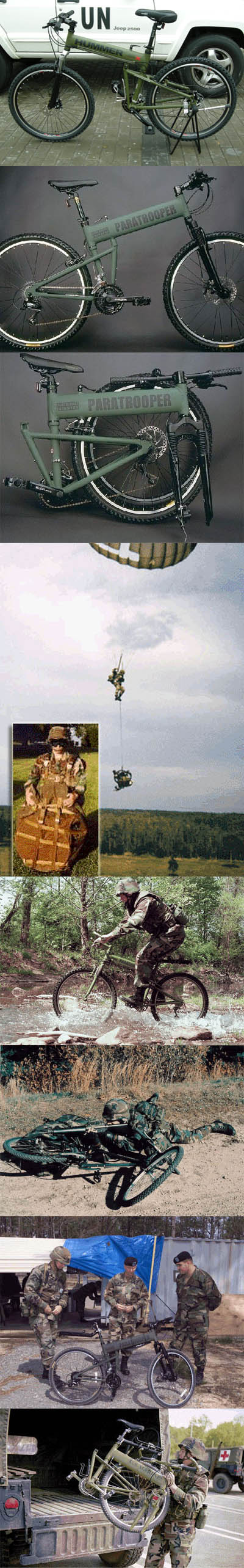 Montague公司1987年成立与美国,是麻省理工毕业生David Montague创立,专门生产26寸的山地折叠车。大多数折叠车大都是小轮径的,并因为折叠需要,强度会受到影响,一般不宜进行高强度的骑行。Montague折叠车拥有折叠后携带的便利性,但拥有和普通山地车同样的几何结构,并不牺牲强度,这些特点让其成为唯一可以进行山地骑行的折叠车,甚至可以用来做高强度的林道骑行。这独特的功能和性能,受到美国军方的认可,生产了一批供伞兵使用的军事用途自行车。有了这些折叠车,就可以快速到达指定目标,大大增强了伞兵降落后的快速移动性。 Montague和美国通用汽车及军队的合作产品,是在网络流传最广的相关资料。另外三菱和宝马,也曾是其合作伙伴,但在网上没有找到更多的相关资料。Montague的民用系列自行车,在世界各地也获得众多车友喜爱。其配置相对较低,车友购买后大都进行改装,不少车友改装后只留下车架。改装的成本,往往也高于自行车本身的价格很多。