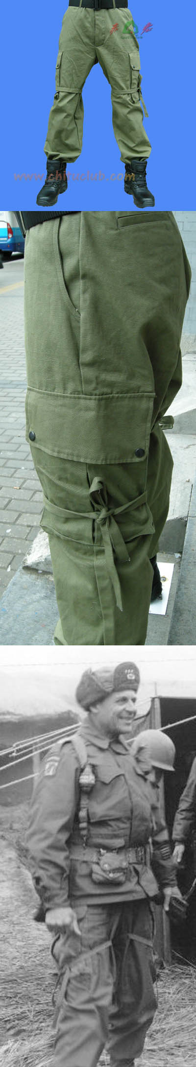 目前尺码:S#2尺4 L#2尺8 XL#3尺 由于现用布料为含棉量较高的纯棉材质,会有缩水现象,请购买的朋友选择比平时大一码的尺寸,如您穿其它作训裤S#合适,那这款您需选择M#。 二战时期,美国步兵的冬装杂乱无章。寒区的人穿着羊毛大衣,步兵们穿着M38呢子夹克,不太冷的时候穿M41夹克,伞兵们穿着M42。陆军司令部一直相统一一下制服。于是开始了新型作战服的设计工作。 43年,新的衣服定型了,叫M43。第一时间就派发给了登陆意大利的部队作为试穿实验,M43在步兵中的反响很好,在冬季的意大利山区里穿着还算暖和。之后在44年强制配发全军。 空降兵作为第一批装备M43的部队有抵触情绪,于是让军官先穿起表率作用。 可当年冬天到了阿登森林外围的巴斯托涅,101师的大兵们就爱上他了。主要是M43足够保暖。M43帮助大量的美国兵熬过了44年欧洲的寒冬。 经历了欧洲寒冬的士兵们爱上了M43,保暖是他们的第一追求。