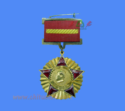 1951年原品纪念章质地为纯铜鎏金,红色为珐琅镶嵌。