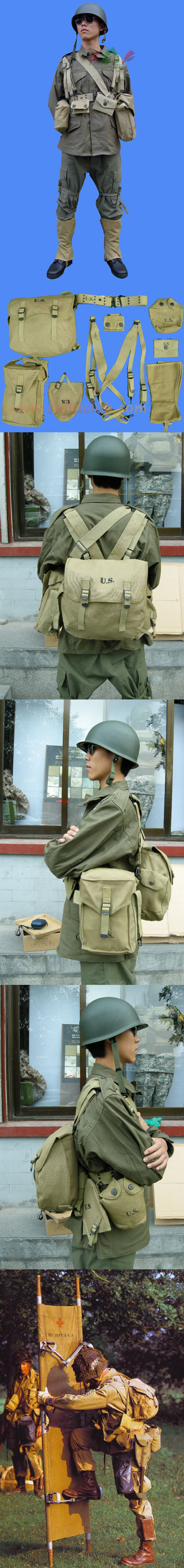 美军二战装具特价促销特价套装包括:X型背带36背包随身医疗包S带绑腿指北针包M-1通用包水壶套锹套