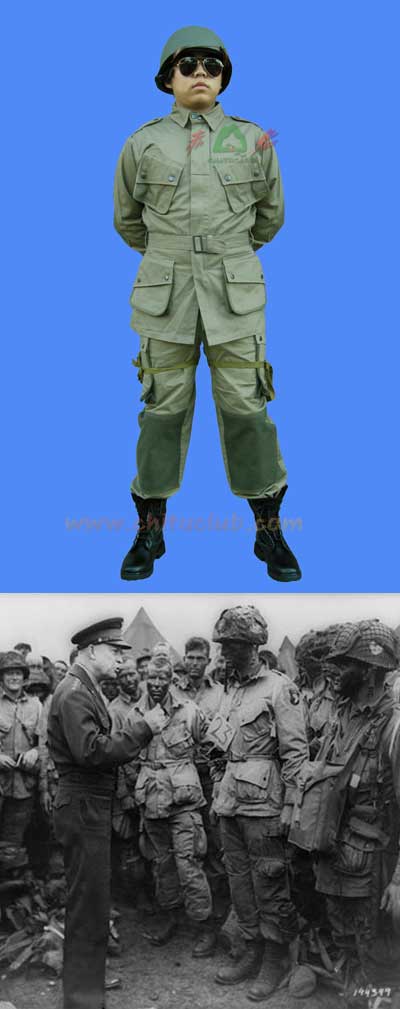 美军二战101空降师作战服,尺码请来电咨询全套包含:作战服(上衣+裤子+腰带)刺绣101空降师师臂章备用口袋2个
