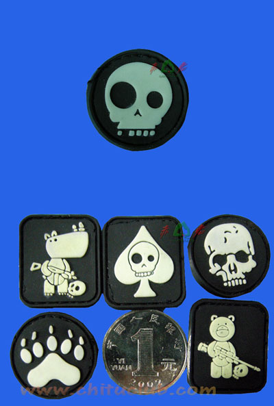 夜光图案,直径3厘米PVC材质,磨沙亚光处理,柔软度好.不容易变形可用清水冲洗,标志后部带有魔术贴,可以粘贴到任何带有魔术贴的背包,挎包,腰包,服装,帽子等搭配使用.