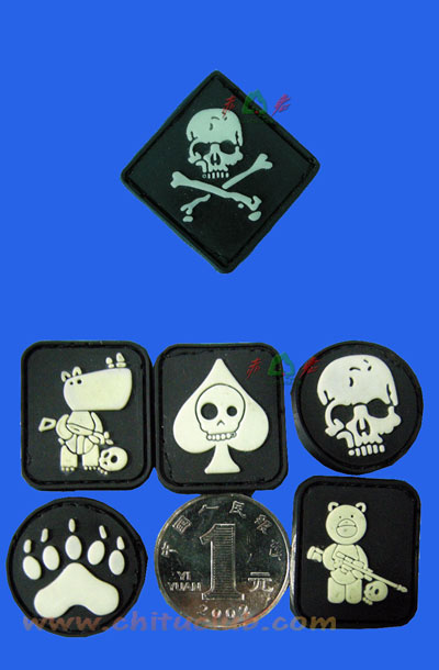 夜光图案,直径3厘米PVC材质,磨沙亚光处理,柔软度好.不容易变形可用清水冲洗,标志后部带有魔术贴,可以粘贴到任何带有魔术贴的背包,挎包,腰包,服装,帽子等搭配使用.
