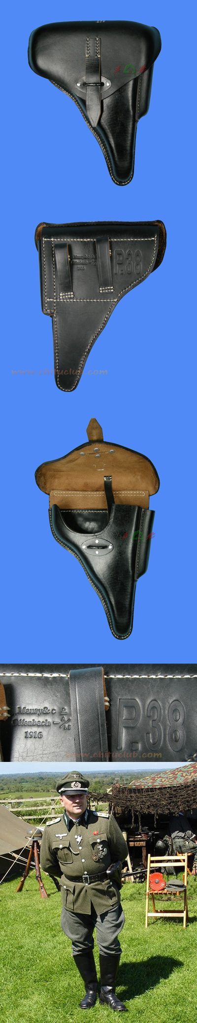 纯牛皮材质 WALTHERP38手枪代替LUGER P08作为德军的标准配制,并于1939年投入生产。LUGER P08手枪相比,它设计简单、安全可靠、易于大批量生产。P38是一种双重制动的武器——在装上弹药、竖起击铁后,你可以再松下击铁,然后在任何时候,你都可以迅速的扳起击铁并抠动扳机打出枪膛内的子弹;在紧急情况下,迅速开火比瞄准更重要,该枪仅须简单的抠动扳机就可以完成竖起击铁和射出枪膛里的子弹这一系列动作。到二战快结束时,生产了超过一百万支该枪。1957年,WALTHER公司开始恢复生产一种轻便型的P38手枪,称为P1型,直到1980年,该枪一直是德军的标准辅助武器。在一些国家,P38一直服役到90年代。