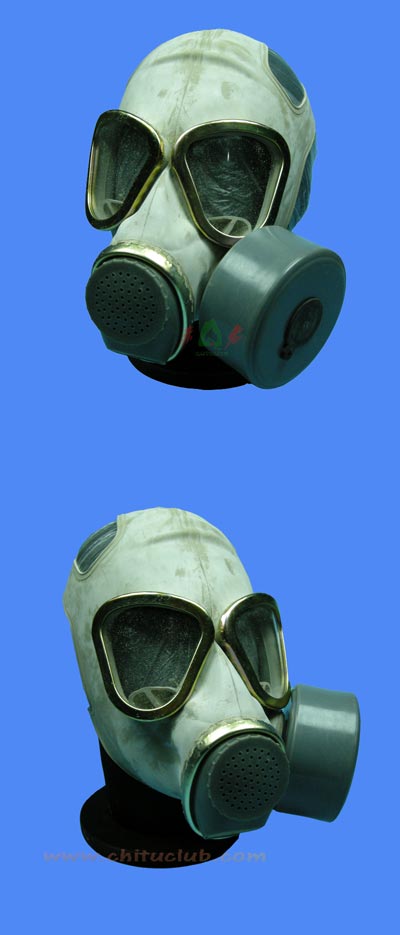 注意!!!此款防毒面具为当年库存,不适用当今防护等级标准,请勿用作生化,实验,特殊环境等,如有必要建议购买专业防护器材!!! 库存全新品,带帆布包.滤罐可更换. 面具表面粉末为滑石粉,用于保护橡胶防止老化,使用是擦去即可。 六九式防毒面具是保护人员面部和呼吸器官免受有毒气体、蒸汽、烟雾、放射性灰尘及细菌等物质伤害的个人防护器材。 六九式面具是由面罩、滤毒罐、面具袋和备份盒四部份组成。将面罩和滤毒罐直接连接,使染毒空气经滤毒罐过滤成清洁的空气被吸入体内。面罩是头盔式结构,在头部分有四个孔形成了五根橡胶头带,罩体上装有一对柱面三角型眼窗,一个通话器和一个滤毒罐结头。六九式滤毒罐外壳是由尼龙1010塑料制成,罐内装有侵碳纱布制成的吸着层和用超细纤维制成的过滤层。六九式面具袋是由4X4股的军绿帆布制成,袋内的大白布袋装滤毒罐用,小白布袋装备份盒和滤毒罐盖,罐塞用,备份盒内装有一片通话膜,一个塑料垫圈和一个内呼吸活门,供使用过程中更换另件用。