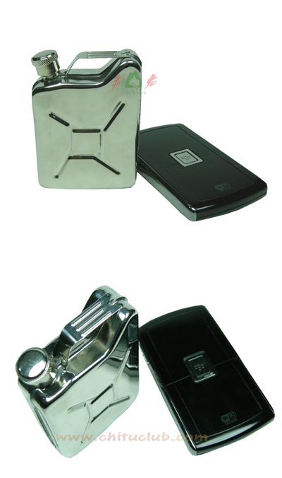 全金属质地,外形为军用油桶,携带方便