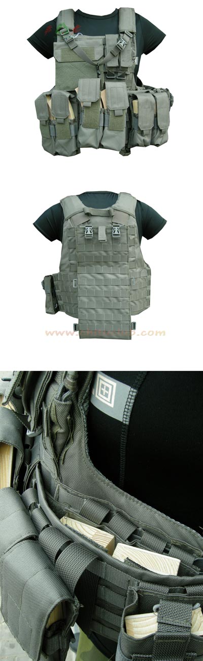 全部组件:双联模块化弹夹包*3、隐藏双联快拔弹夹包*2、双联手枪模块化弹夹包*1、地图包*1、可拆卸模块化水袋包*1、可拆卸单点枪带*1(仅能配合战术背心一起使用)、模块化长对讲机包总计共10个弹夹包+2个手枪弹夹包全部部模块化设计,背部模块化水袋包,背心组件可自由组合内衬解脱钢绳,拉出绳扣后背心可简单分解背心采用海绵+衬网内里,穿着非常舒适