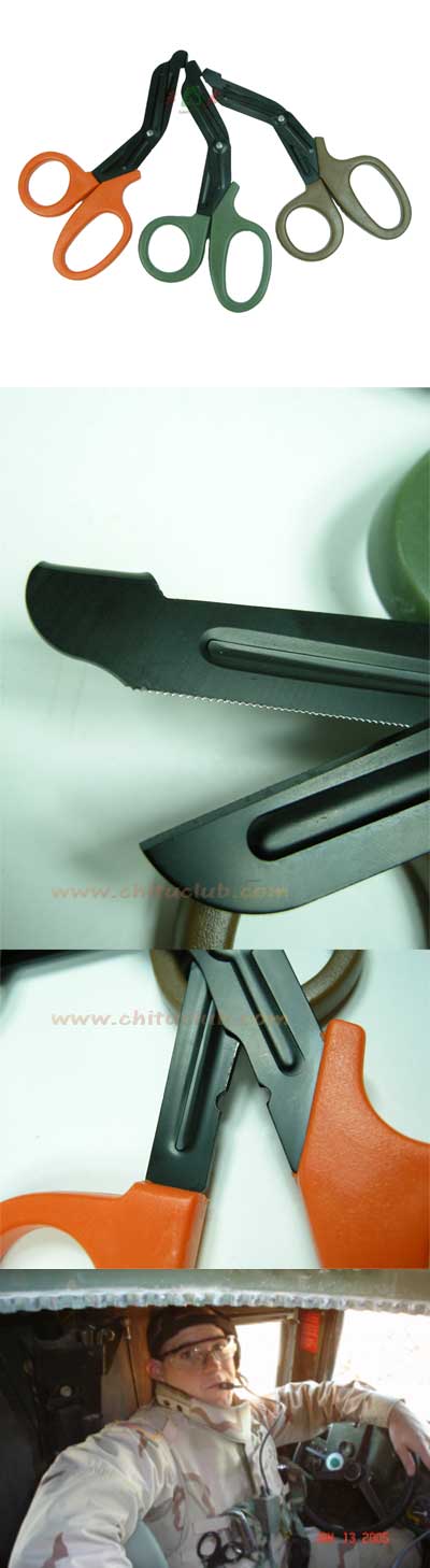 绿色、橙色、泥色三种颜色可选美军医疗部队大量装备特有保护型刀头设计,保证在剪开衣物清创时不会对皮肤造成二次伤害