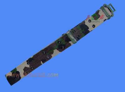 宽4cm,长115cm。纯棉制,丛林迷彩,金属扣.