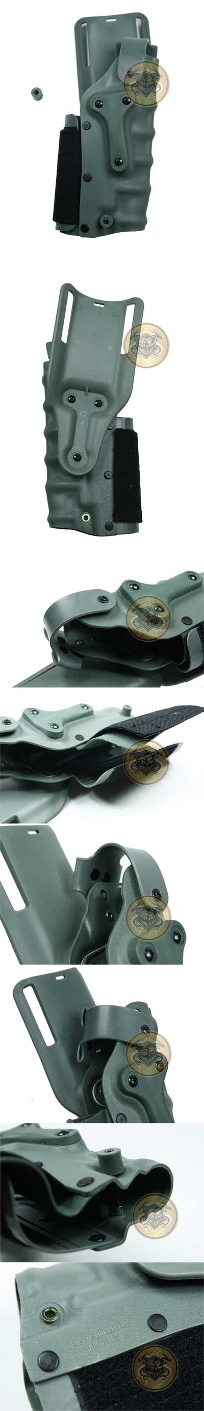 塑料材质,简单拆装可以互换左右枪套内部空间可调节,完全适应大部分型号预留空间可以带枪灯直接装入