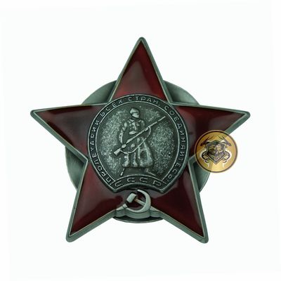 红星勋章是根据苏联中央执行委员会主席团1930年4月6日命令设立的。可授予战时和平时在国防事业中有卓越功勋的苏军官兵、部队、舰队、兵团、劳动者、劳动者集体、机关、企业和社会团体。布柳赫尔是第一名红星勋章获得者(1930)。红星勋章采用了工农红军的象征-红色五角星造型,红星中央为手持步枪的红军战士形象,周边有“全世界无产者联合起来”和CCCP字样