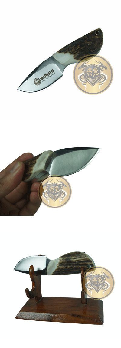 全长:127mm刃长:60mm刃厚:5.0mm刃宽: 30mm柄材: 鹿角硬度: 58HRC重量:140g(含包装)