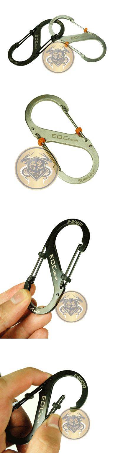 特点;外形大块,用料十足。不同于传统快挂,带有锁定设计【通过两边弹簧钢丝上增置塑料滑块,通过滑动上下固定】。使得你的挂载物更加安全,有效防盗。