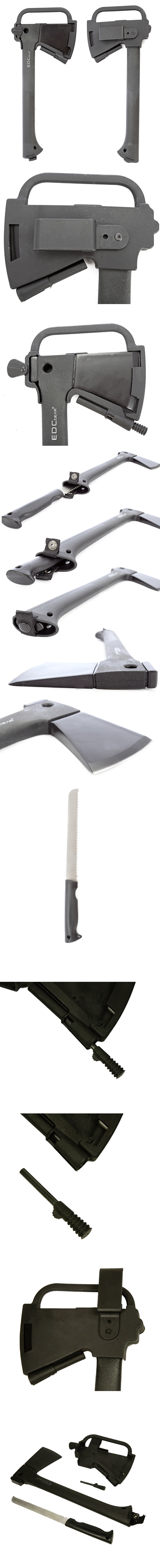 “短吻鳄”套装包括了一把工兵斧子、一把锯刀,一把打火棒,一个斧头套。整体设计轻量紧凑,爆发力更足。锯刀可以直接插进工兵斧的柄里面,设计巧妙收纳方便,其中斧头和锯刀刃都是采用高强度不锈钢做成,坚硬耐用。手柄使用科技材质玻璃尼龙合成材料制成,坚韧轻巧,防滑性佳。打火棒设计也巧妙,隐藏放置提手硬鞘处。腰带扣可自由旋转,方便携带。