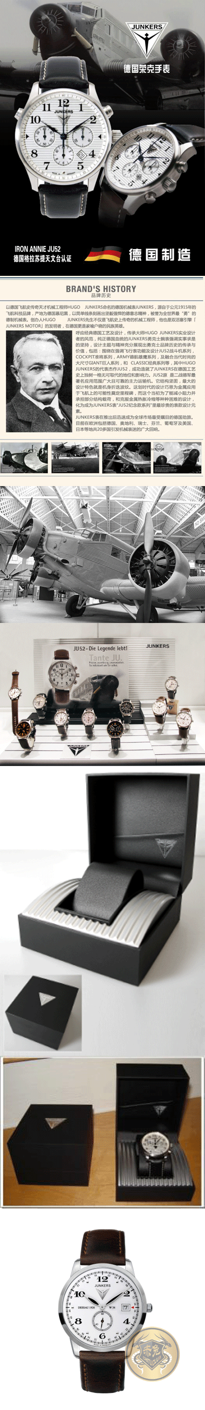 沿用制造飞机所使用的 经典 LOGO ,每一块荣克手表都灌注了荣克制造飞机的理念:刚毅,简约,精密,耐用;德国制造,极具个性化的设计 ,精湛的手工,最实惠的价格,使荣克手表成为德国出货量最大的手表品牌。