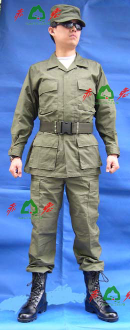 去年买了一套,很喜欢单绿色的套服,因为在各种场合都可以穿着。前段时间在赤兔买了一套三沙的,但偏大,后来又换成了单绿套服,现在我有两套了,可惜不是原品,不过仿品现在已不多了,好像只有赤兔等少数军品店才有现货。