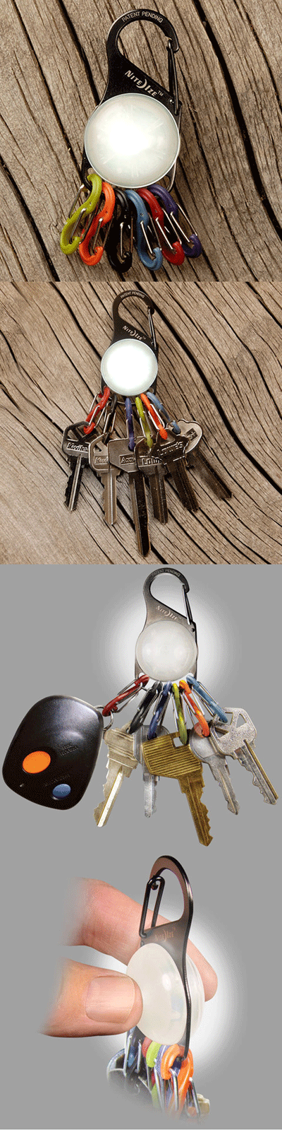产品描述 小巧、精致、灵活、多功能,这就是凯亮钥匙扣。一端是优质不锈钢挂扣,可挂于钥匙圈,皮带环,拉链孔,钱包带等凡是具备挂圈的地方,另一端带6个不同颜色的塑料8字扣,而在两端之间我们增加了一颗明亮的LED。 6个可移除8字扣,6种不同颜色可轻松辨认不同钥匙,LED有两种模式——常亮模式(照明,查找钥匙,查找钥匙孔)和闪烁模式(可作警示作用),使用两粒锂电池,电池可更换,1.6公里可见发光范围,坚固耐用,总之,LED不锈钢凯亮钥匙扣是您的完美选择。 产品详情 包含6个不同颜色的#0号塑料8字扣 不同颜色8字扣挂扣不同钥匙,轻易辨认所需钥匙 具备不锈钢挂扣,哪里方便,挂于哪里 常亮和闪烁两种模式,常亮模式续航时间:20小时,闪烁模式续航时间25小时 使用2颗2-3V 2016锂电池且电池可更换 防水结构