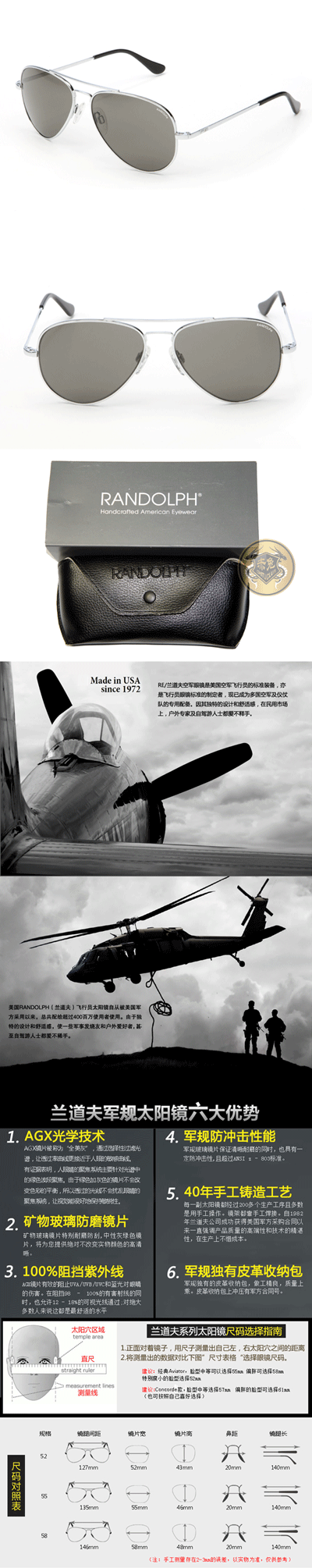 【商品名称】 美国Randolph 经典款 CONCORDE飞行员太阳镜(银框灰片)