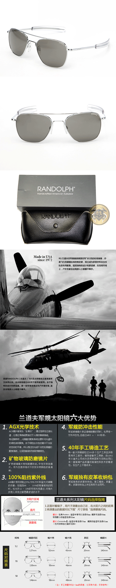 【商品名称】 美国Randolph 经典款 AVIATOR飞行员太阳镜(银框灰片)