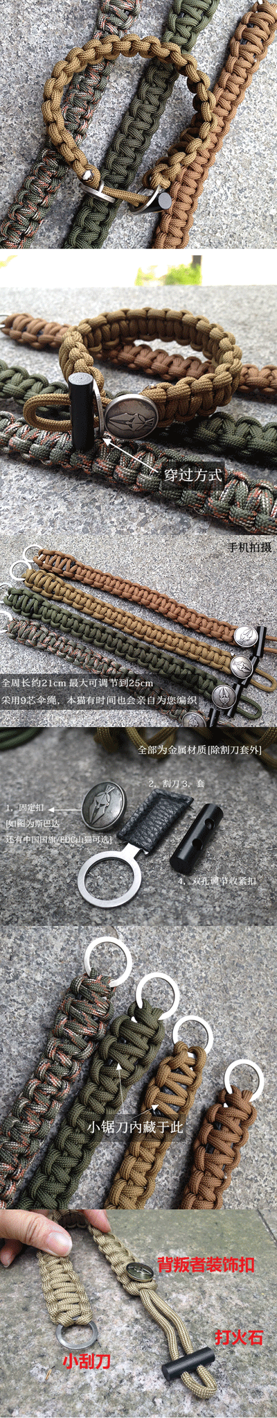 【商品名称】 斯巴达伞绳手链 带取火器小工具刀