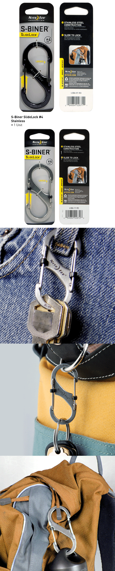 【商品名称】 奈爱 S-biner 带锁定S扣 (黑/银)