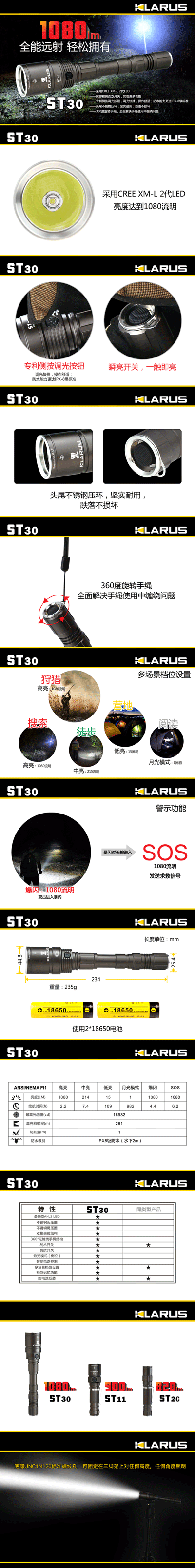 1.采用CREE XM-L2 LED,亮度达到1080流明: 2.尾部和侧面双开关,实现更多功能: 3.专利侧按调光按钮,调光快捷,操作舒适;防水能力更达IPX-8级标准: 4.颈部UNC1/4'-20标准螺纹孔,可固定在三脚架上对任何高度,任何角度照明: 5.头尾不锈钢压环,坚实耐用,跌落不损坏: 6.双向可拆卸抱夹,方便使用: 7.360度旋转手绳,全面解决手绳使用中缠绕问题: 1.使用Cree XM-L2 LED, 使用寿命高达50000小时