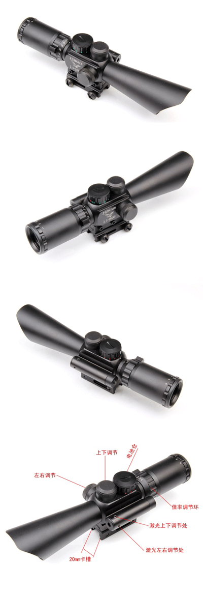 【商品名称】 M8 10X40 3.5-10倍可调带红激光 瞄准镜