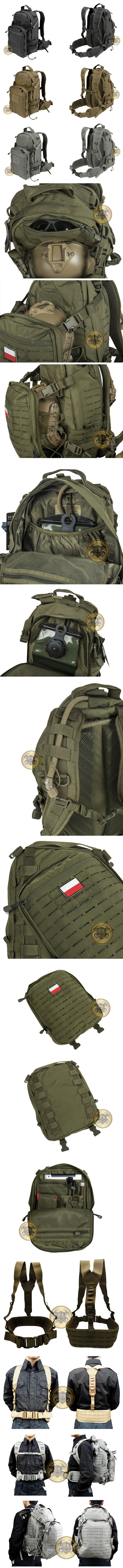 原料:100%Cordura® 500D尼龙面料,DWR涂层,激光切割技术支持MOLLE系统,大容量主包+可拆卸副包,可自行配置水袋使用,带可拆卸腰封一套。 容量:28 + 3.5升 尺寸(主包):52 x30x18cm 重量:2290克