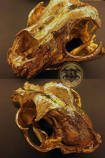 尖儿货中的极品!雪豹头骨!材质是纯铜镀真金,裸重3.8公斤