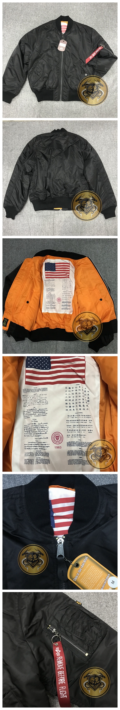 MA-1是阿尔法公司受雇于美国国防部专为飞行员设计的一款夹克,用于替换二战时期的B15飞行夹克。在其长达20余年的服役期间,饱受美国空军好评。MA1采用了针织领,由毛线织成的衣领可以紧贴在脖子上很暖和。衣服的左臂上有一个组合口袋,它由一个拉练开合的口袋和笔袋组成。这个口袋最初的设计初衷是让飞行员装一包烟。笔袋里可以装两支以上的笔。