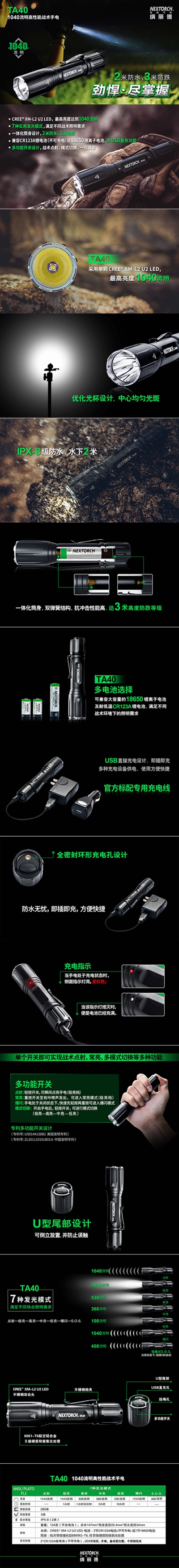 【商品名称】 纳丽德AT40手电(含电池)