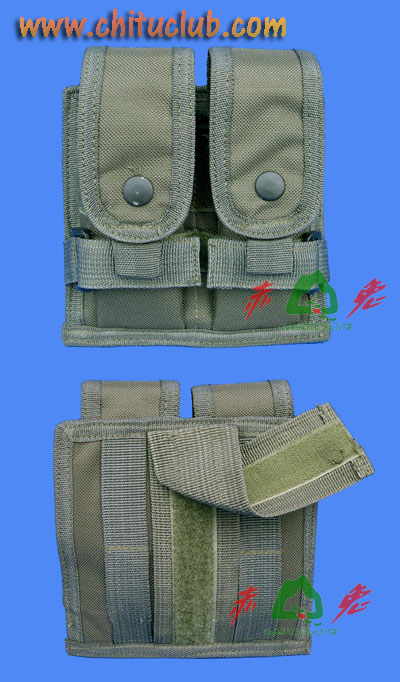 600D防水尼龙制适合装置两个美军M92系列手枪弹匣背面为模块化设计,可以搭配各类模块化战术背心及其它装具。